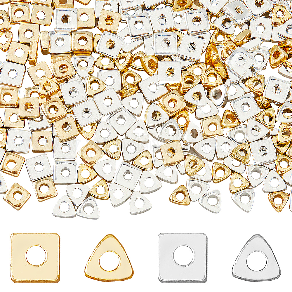 320шт 4 стиль латунные бусины, долговечный, треугольник/квадрат
