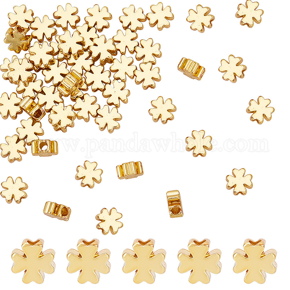 • Настоящее золото 18K Латунные бусины, клевер, реальный 18 k позолоченный, 5x5x2.5 мм, отверстие : 1.5 мм, 50 шт / коробка