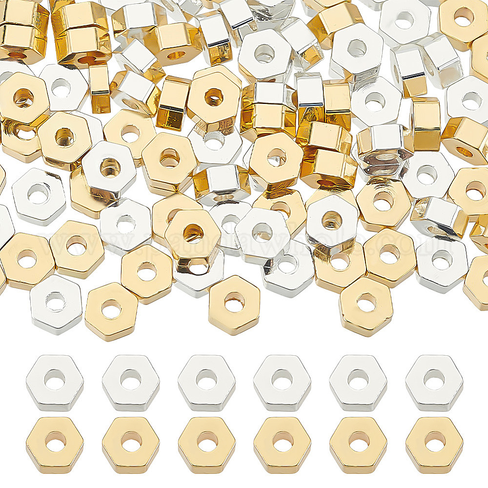 100шт 2 цвета стойка покрытие латунные бусины, без кадмия и без свинца, долговечный, шестиугольник