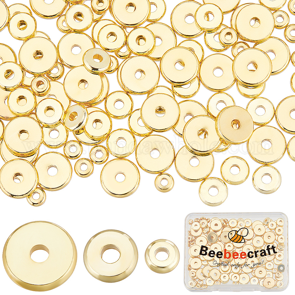 150шт 3 стиль латунные бусины, долговечный, Плоский круглый / диск, Heishi бусы