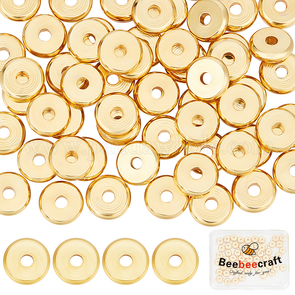 • Настоящее золото 18K 100 латунные бусины шт., долговечный, Плоский круглый / диск, Heishi бусы, реальный 18 k позолоченный, 6x1.5 мм, отверстие : 1.8 мм