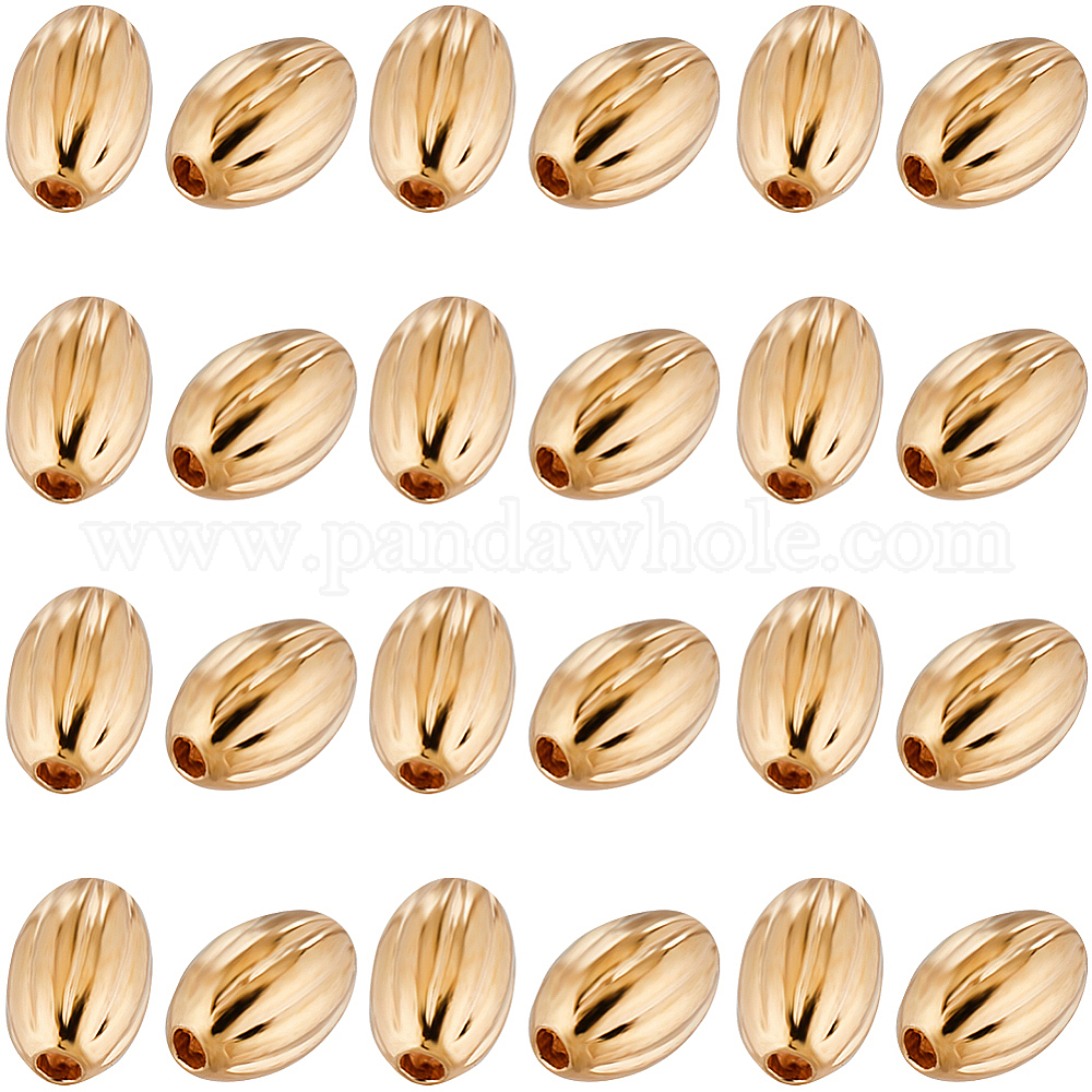 овальные латунные гофрированные бусины: длиной около 5 мм., 3 мм диаметром, отверстие : 0.5 мм, 100шт;