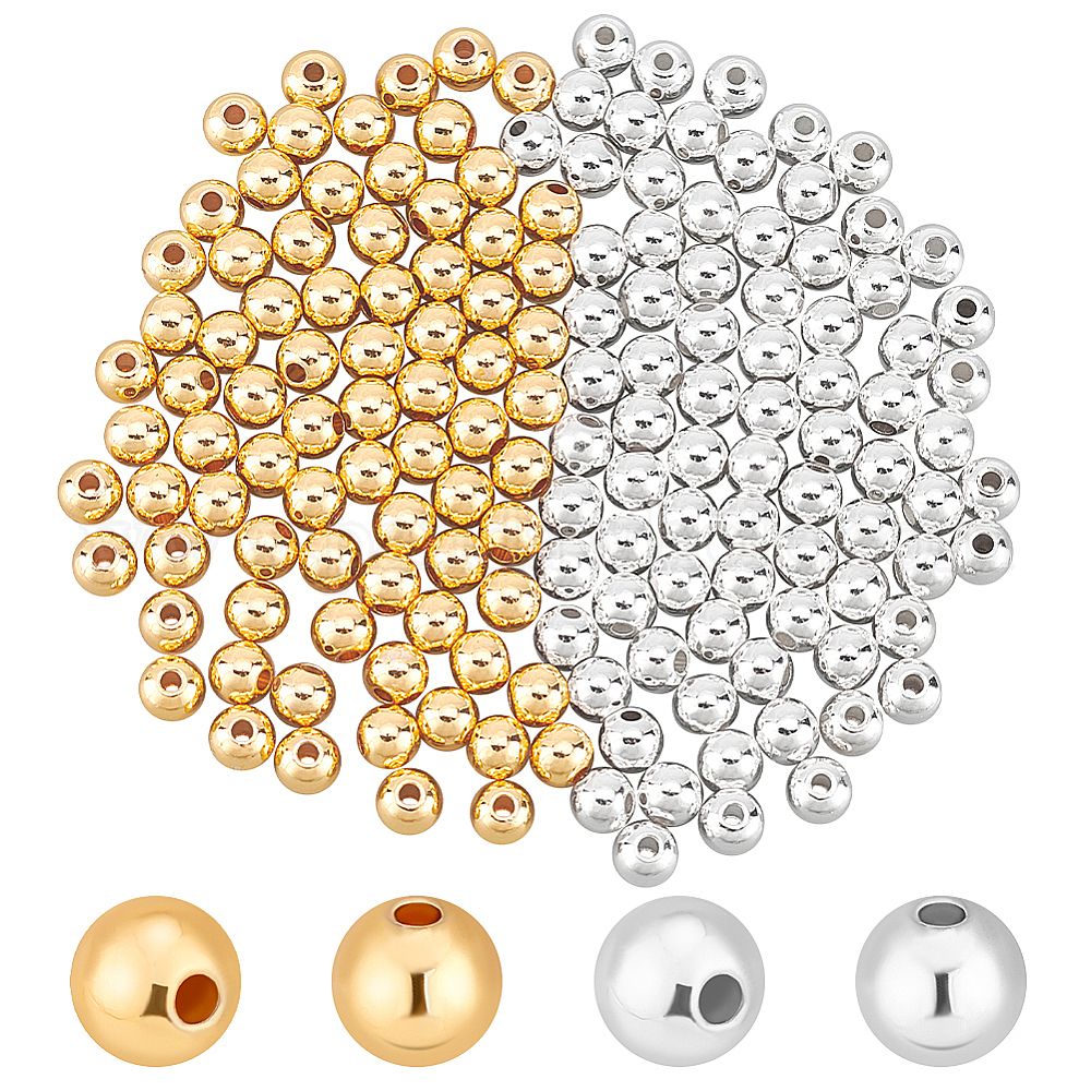 160шт 2 цвета стойка покрытие латунные бусины, долговечный, круглые