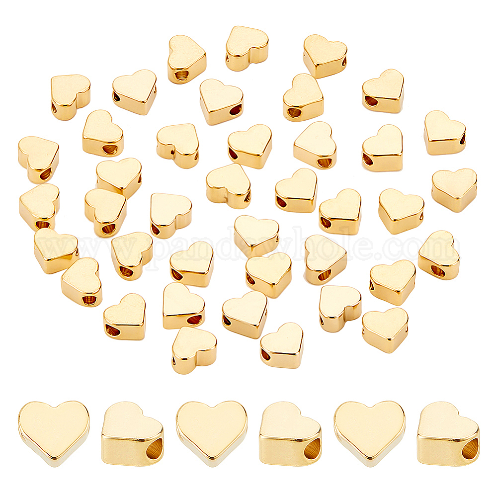 • Настоящее золото 24K 40шт. стойка для покрытия экологически чистыми латунными бусинами, долговечный, сердце, реальный 24 k позолоченный, 6x7x3 мм, отверстие : 1 мм