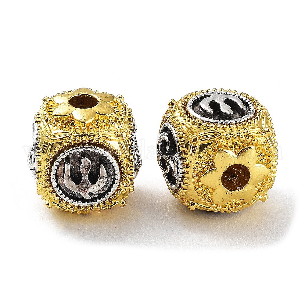 • Античный Серебристый & Золотой Латунные бусины, Кубик с цветком, без кадмия, без никеля и без свинца, старинное серебро & золотой, 12x11.5x9 мм, отверстие : 3 мм