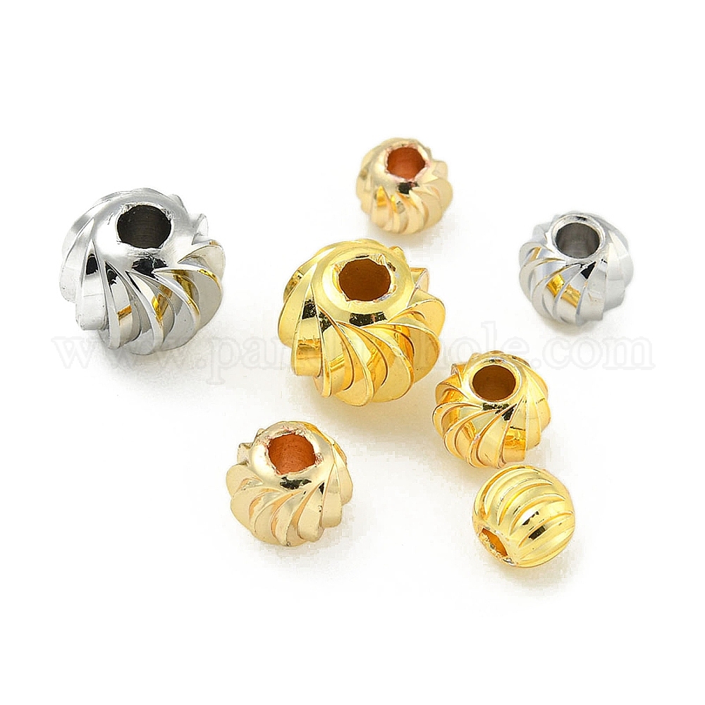 • Платина Латунные бусины с реечным покрытием, долговечный, без свинца, без никеля и без кадмия, круглый с текстурой, платина, 8x6 мм, отверстие : 2.5 мм