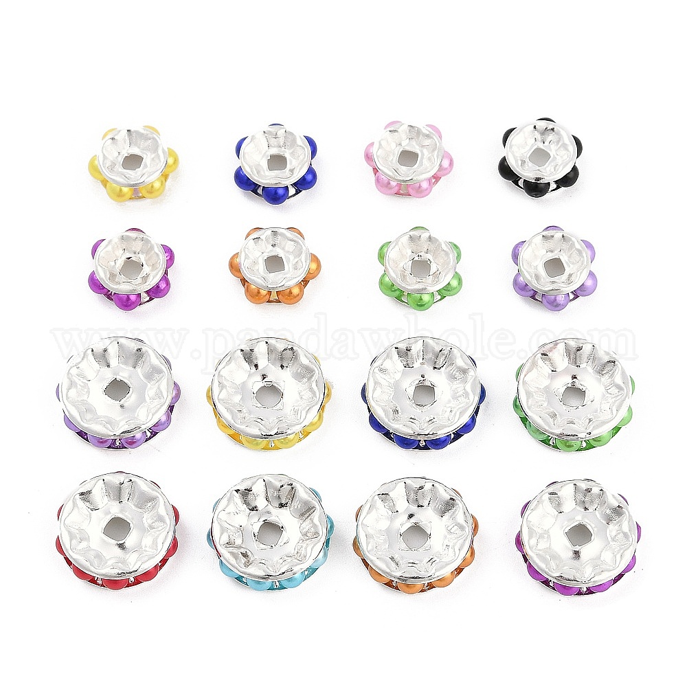 • (52) Непрозрачная лаванда Латунные бусины, без кадмия и без свинца, с абс пластмассовой имитационной жемчужиной, плоско-круглые, серебряные, разноцветные, 10x4 мм, отверстие : 1.8 мм