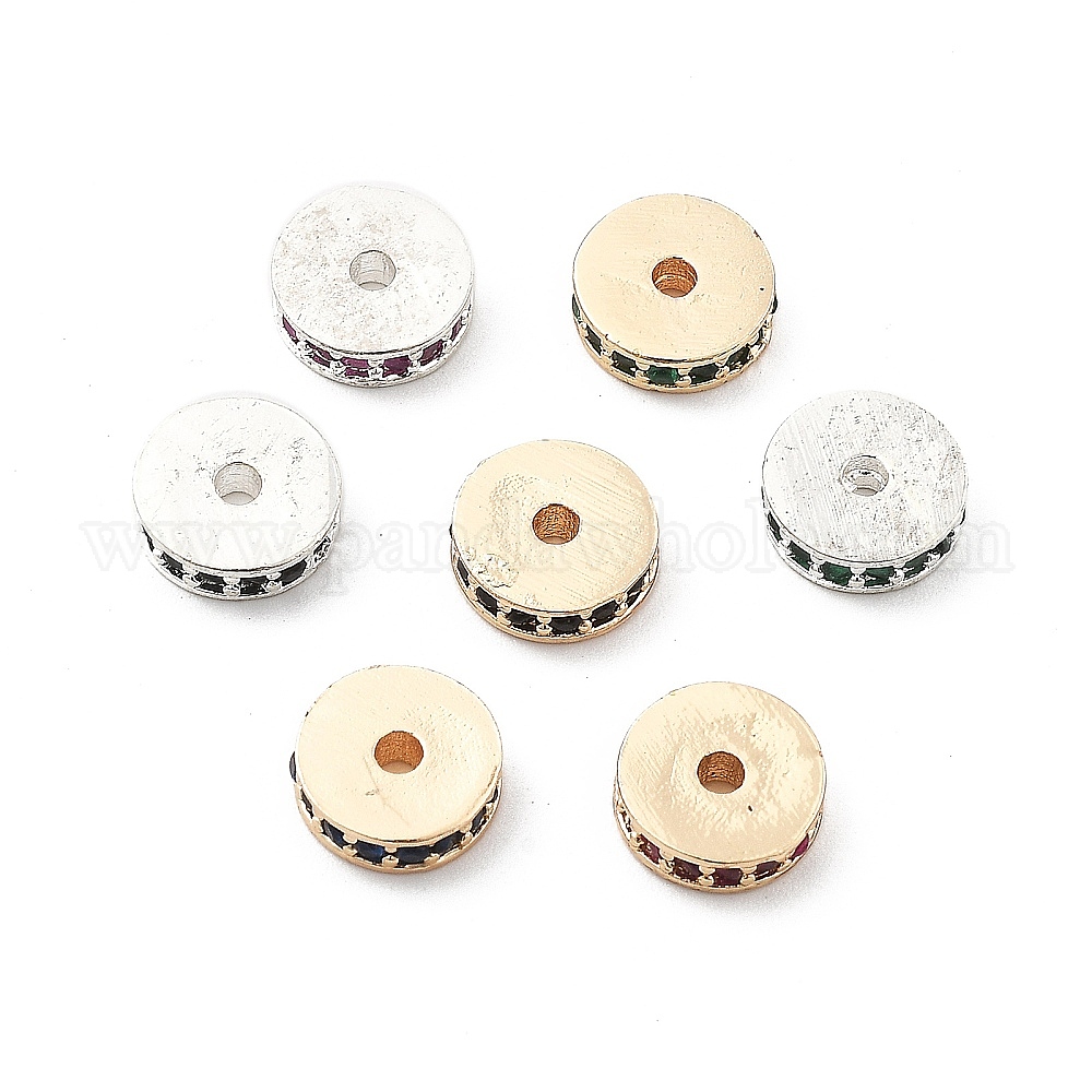 Латунные микро проложить кубического циркония бусы, долговечный, стойки покрытие, плоско-круглые
