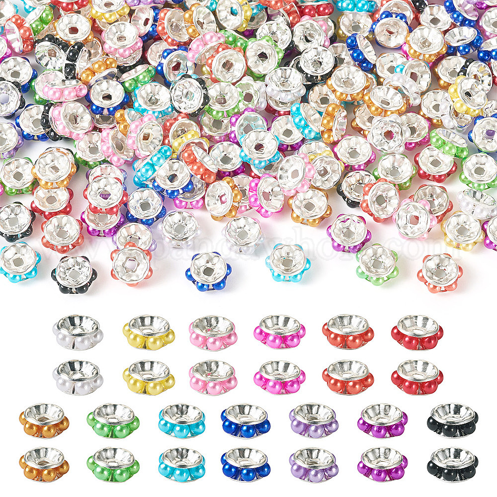 200 латунные бусины шт., с абс пластмассовой имитационной жемчужиной, плоско-круглые, серебряные