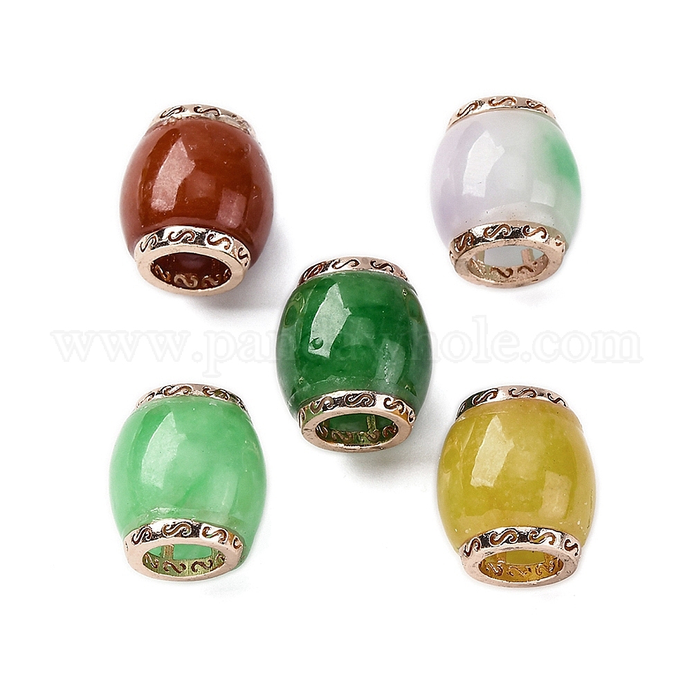 Латунные бусины из натурального мьянманского нефрита, баррель, розовое золото