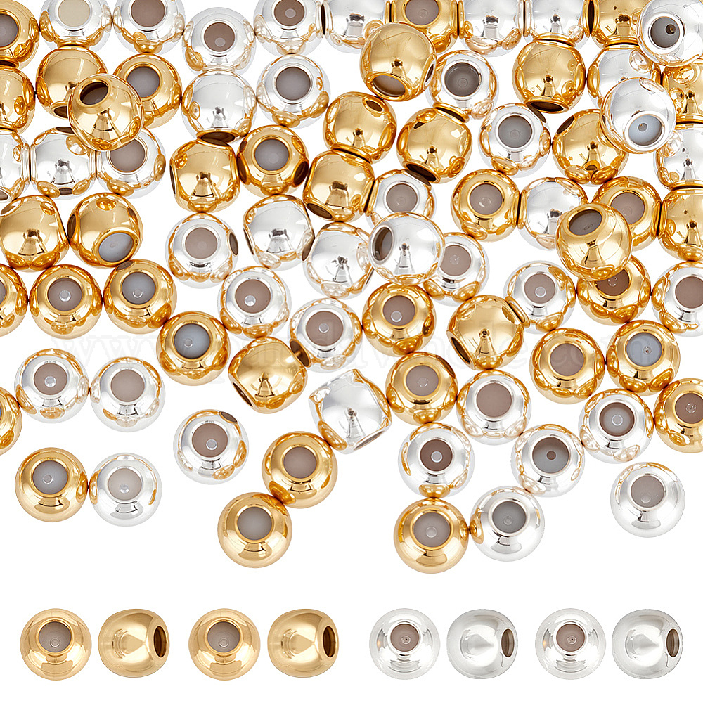 80 шт. 2 цвета латунных бусин, с резиной внутри, ползунки, долговечный, круглые