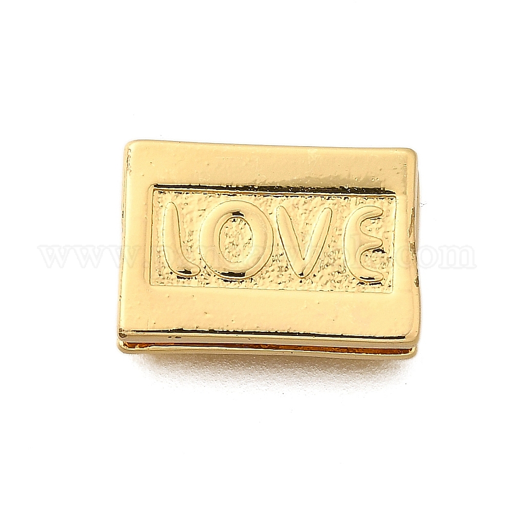 • Настоящее золото 18K Латунные бусины, стойки покрытие, долговечный, без свинца и без кадмия, прямоугольник со словом любовь, реальный 18 k позолоченный, 10x14.5x3.5 мм, отверстие : 2 мм