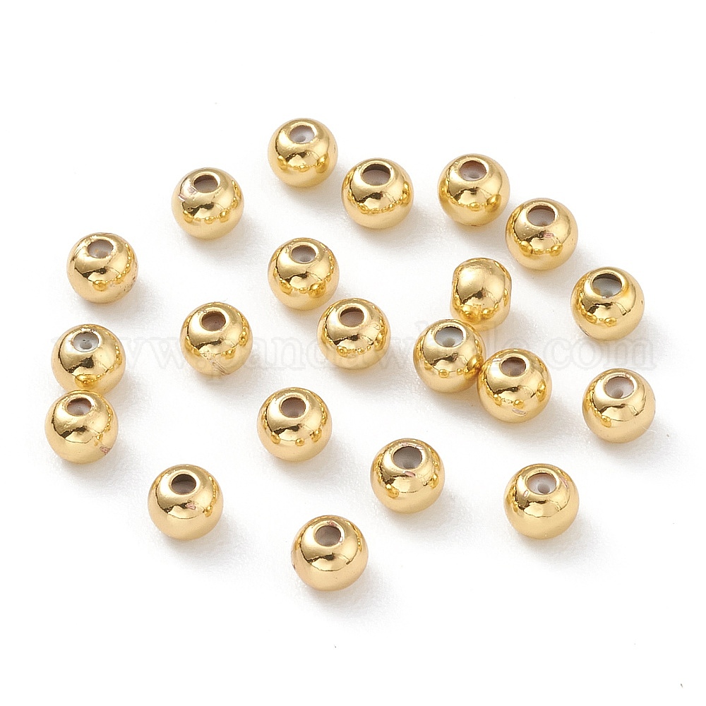 • Настоящее золото 18K Латунные бусины, с резиной внутри, ползунки, долговечный, круглые, реальный 18 k позолоченный, 4x3 мм, отверстие : 1 мм