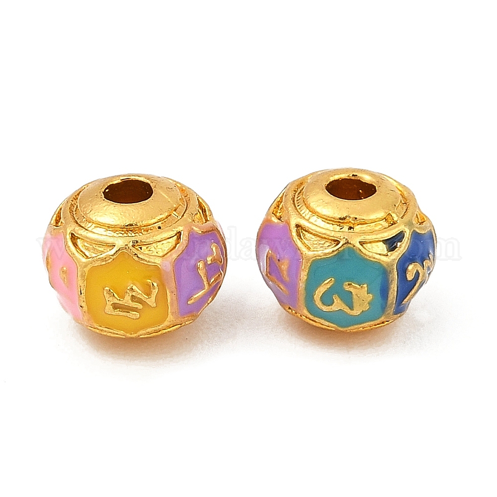 • Орхидея Латунь эмаль бисера, без кадмия, без никеля и без свинца, круглые, матовый золотой цвет, сиреневые, 6x5 мм, отверстие : 1.4 мм