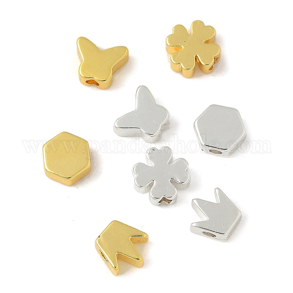• Шестиугольник Латунные бусины, стойки покрытие, долговечный, серебряные, шестиугольник, 5x5.5x2.3 мм, отверстие : 1.2 мм