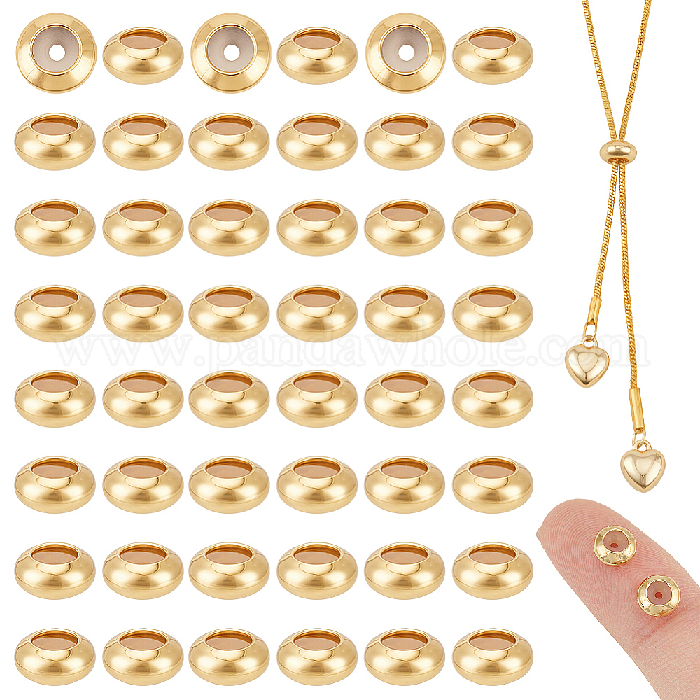 50 латунные бусины шт., с резиной внутри, ползунки, рондель (037F4Y)