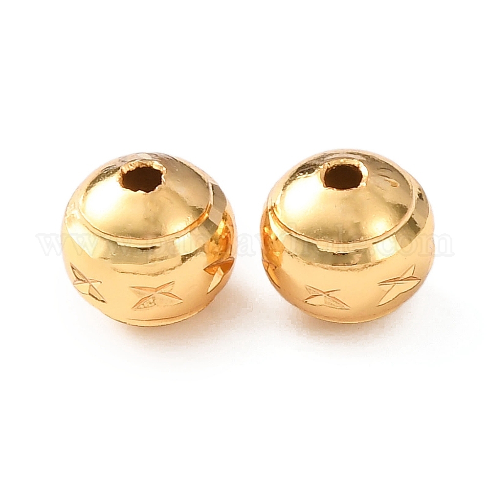 • Настоящее золото 24K Латунные бусины, текстурированная круглая, стойки покрытие, долговечный, без кадмия и без свинца, реальный 24 k позолоченный, 8x7.5 мм, отверстие : 1.6 мм