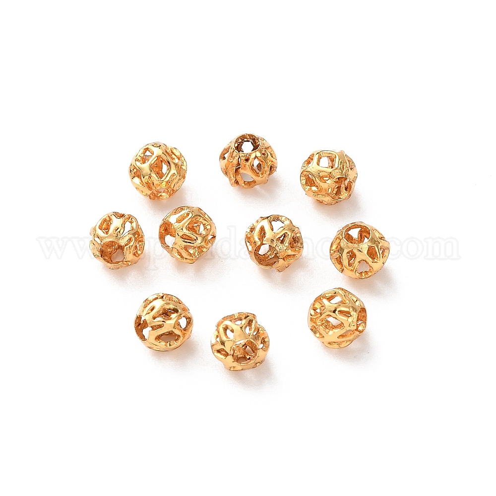 Латунные бусины, полый круглый, стойки покрытие, долговечный, без кадмия и без свинца