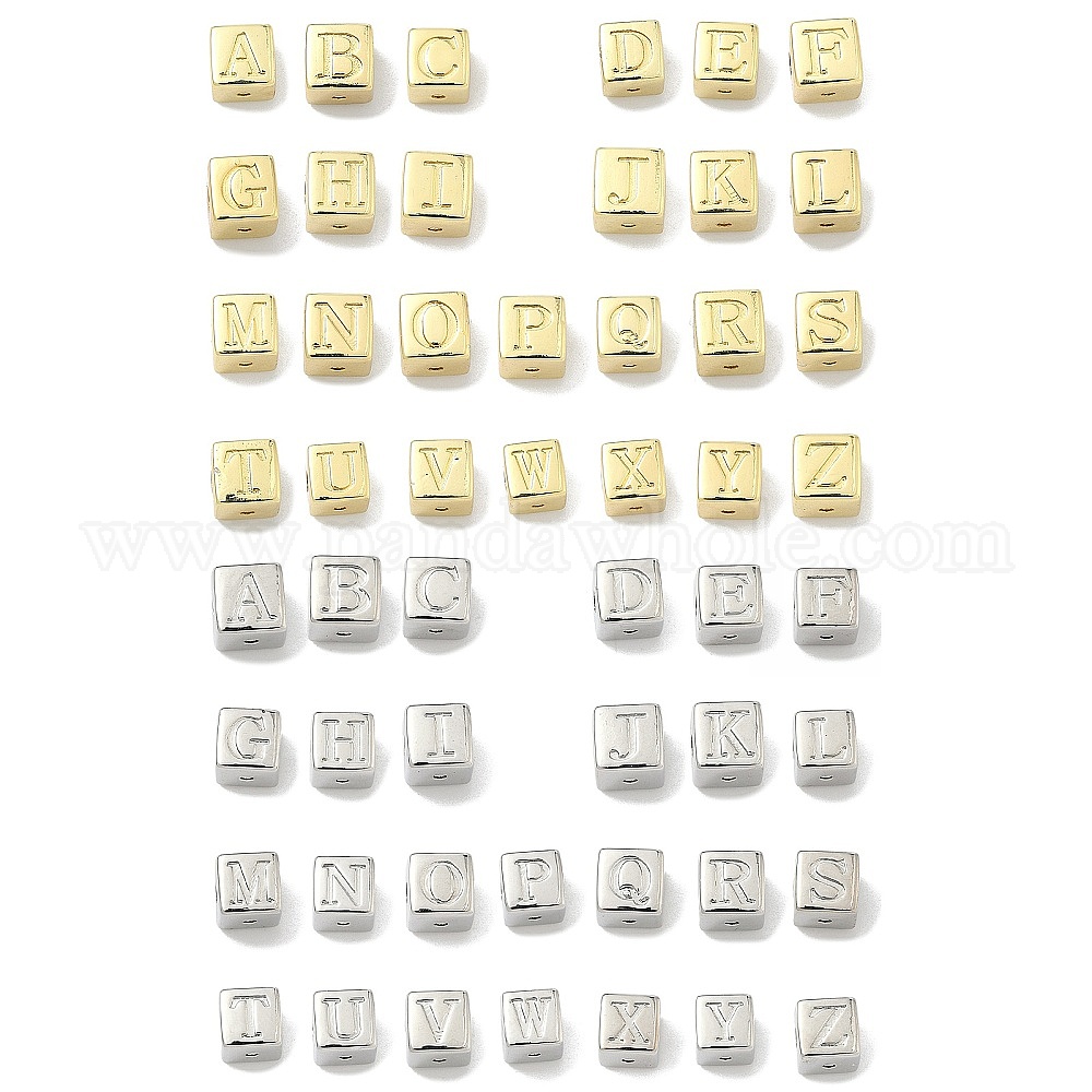 Латунные бусины, без кадмия и без свинца, долговечный, стойки покрытие, куб с письмом