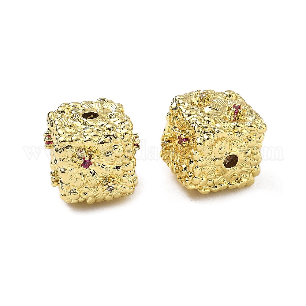 Латунные микро проложить кубического циркония бусы, площадь с цветочным узором, без кадмия и без свинца, стойки покрытие