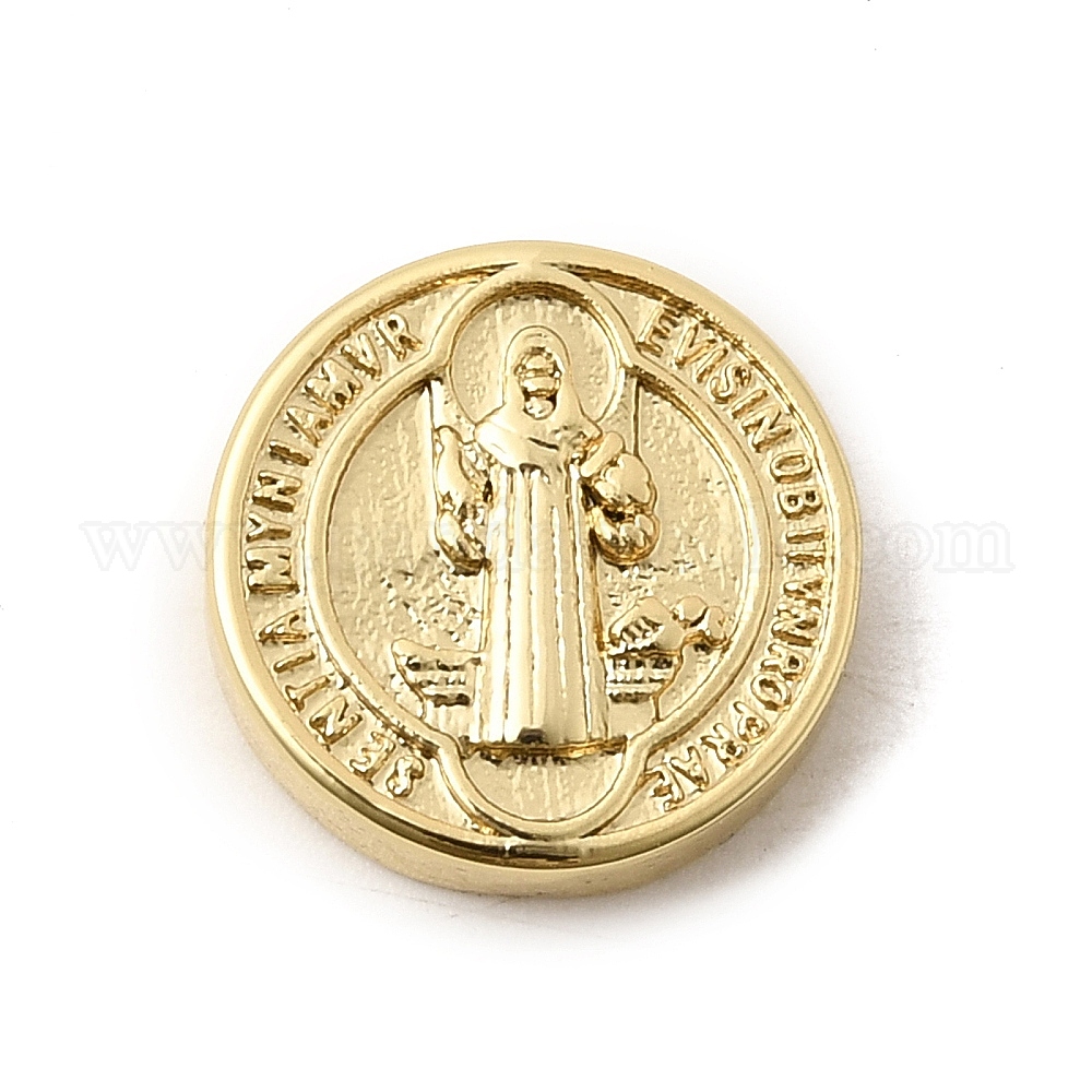 Религиозные латунные бусы, долговечный, стойки покрытие, без свинца и без кадмия, плоский круглый со святым шармом