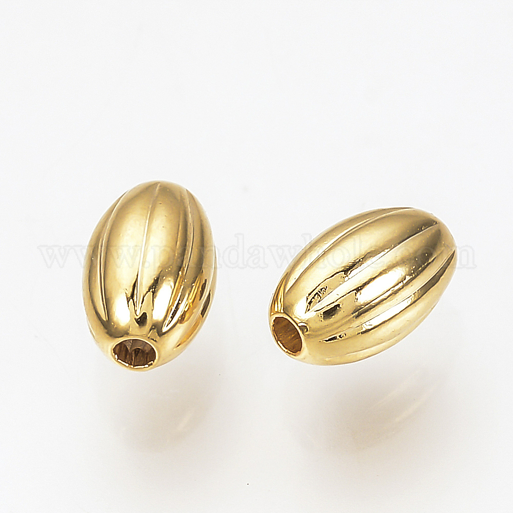 • Настоящее золото 18K Латунная гофрированная бисера, без никеля , Позолота, овальные, реальный 18 k позолоченный, 5x3 мм, отверстие : 0.5 мм