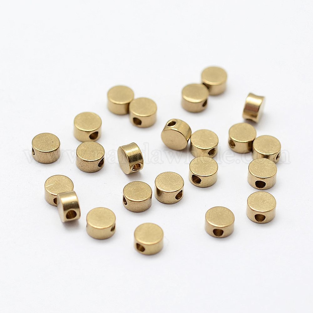 • Без Покрытия Латунные бусины, без никеля , плоско-круглые, без покрытия, 4x2 мм, отверстие : 1.5 мм