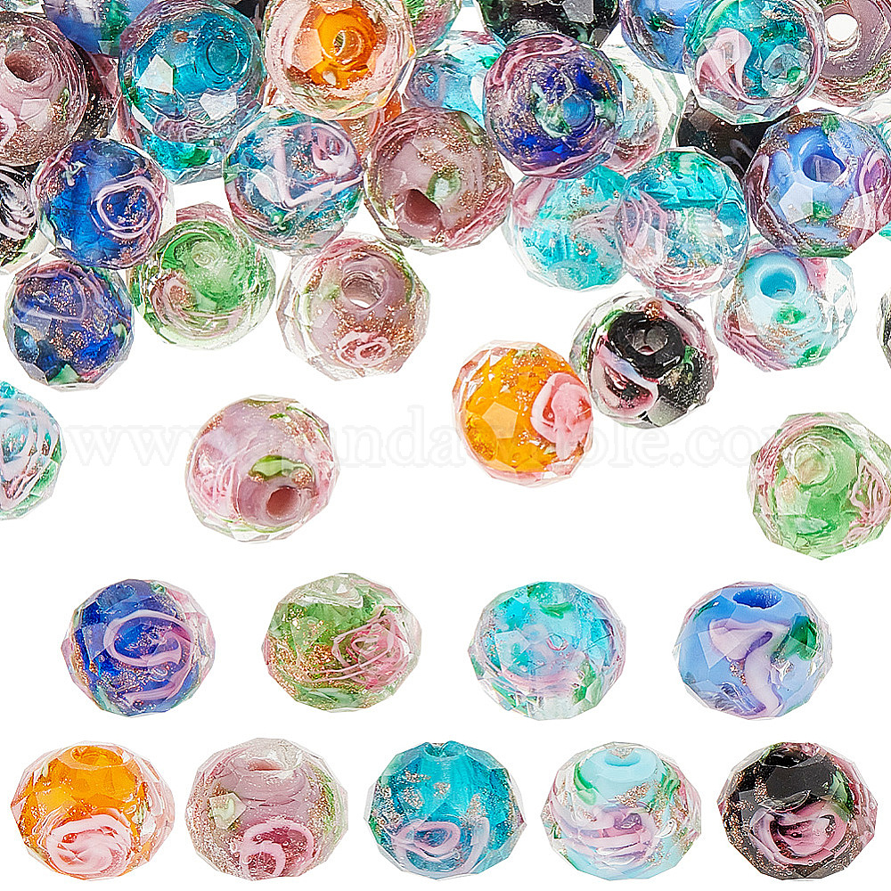 90 шт 9 цвета ручной работы золотой песок бусины лэмпворк, со цветком внутри , граненые, шайба