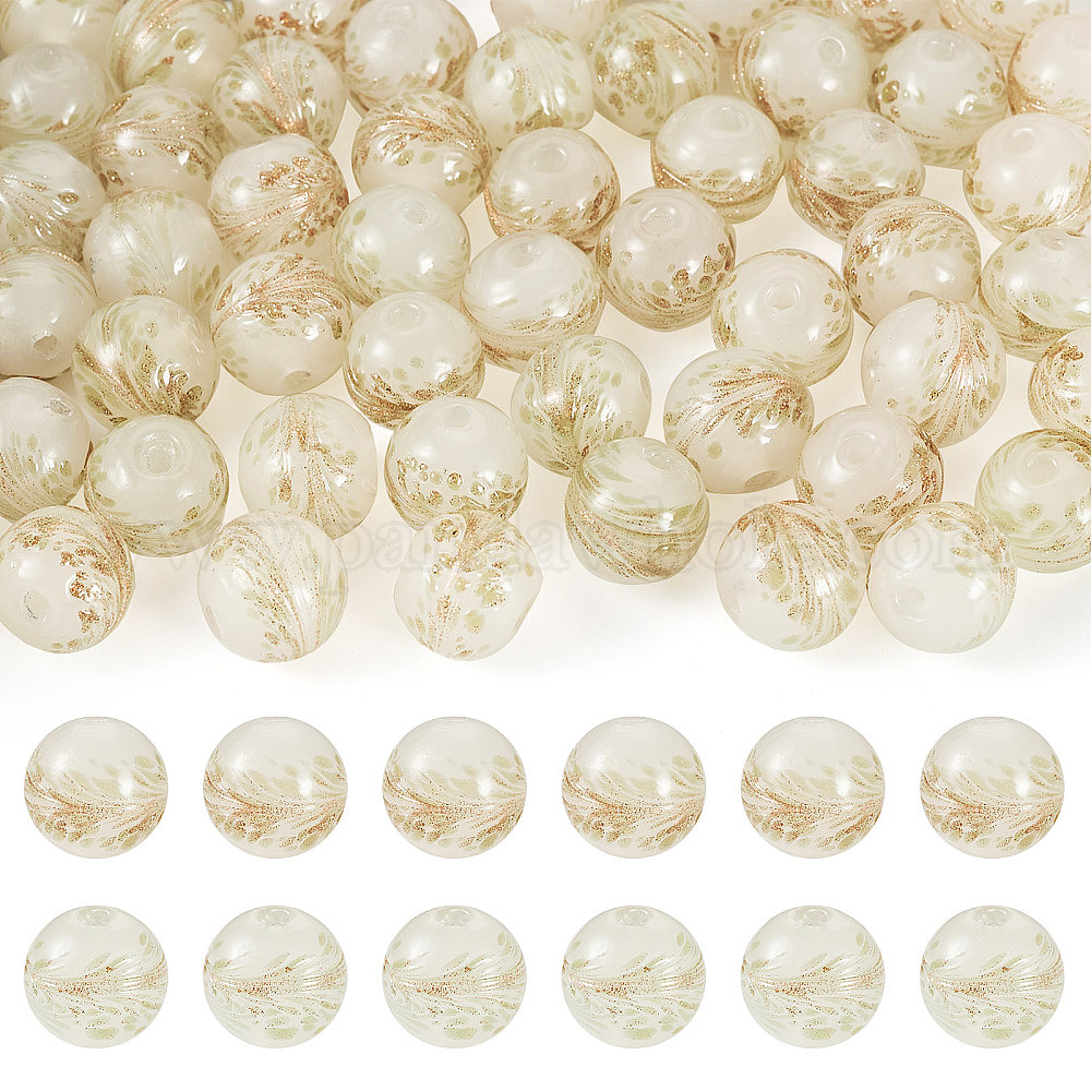 50 шт. бусины ручной работы из песка в технике лэмпворк, круглая с цветком