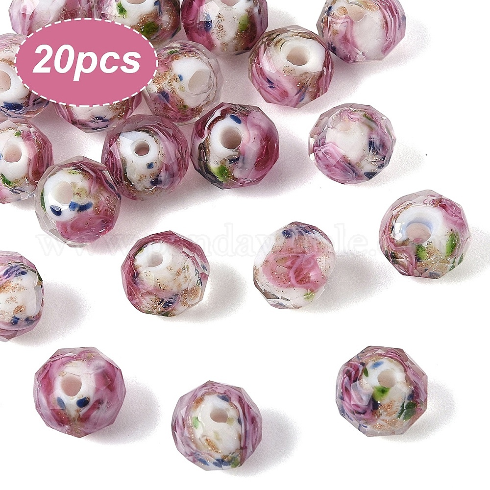 20шт. бусины ручной работы из золотого песка в технике лэмпворк, со цветком внутри , граненые, шайба