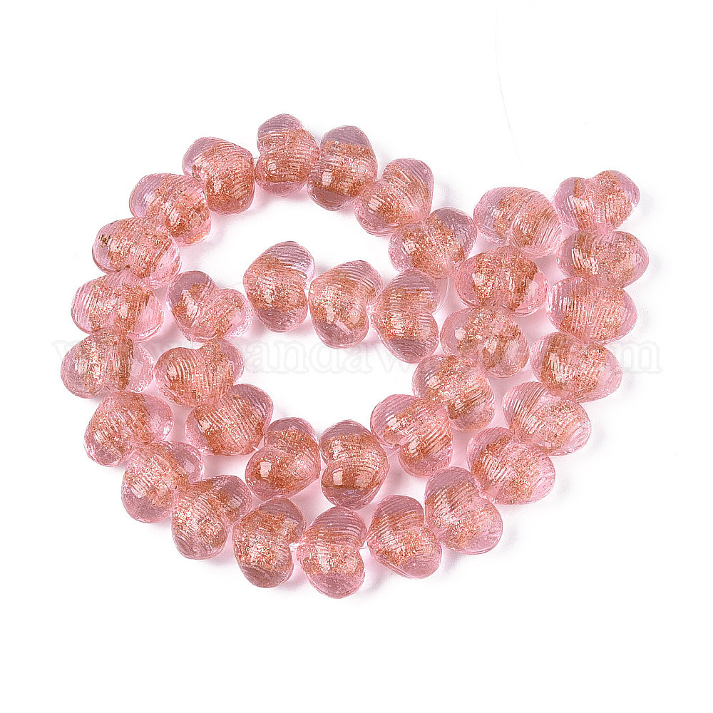 • Светло-Коралловый Бусины ручной работы бусины золотого песка, сердце, свет коралловый, 12.5~14x18~18.5x11~12 мм, отверстие : 1~1.5 мм