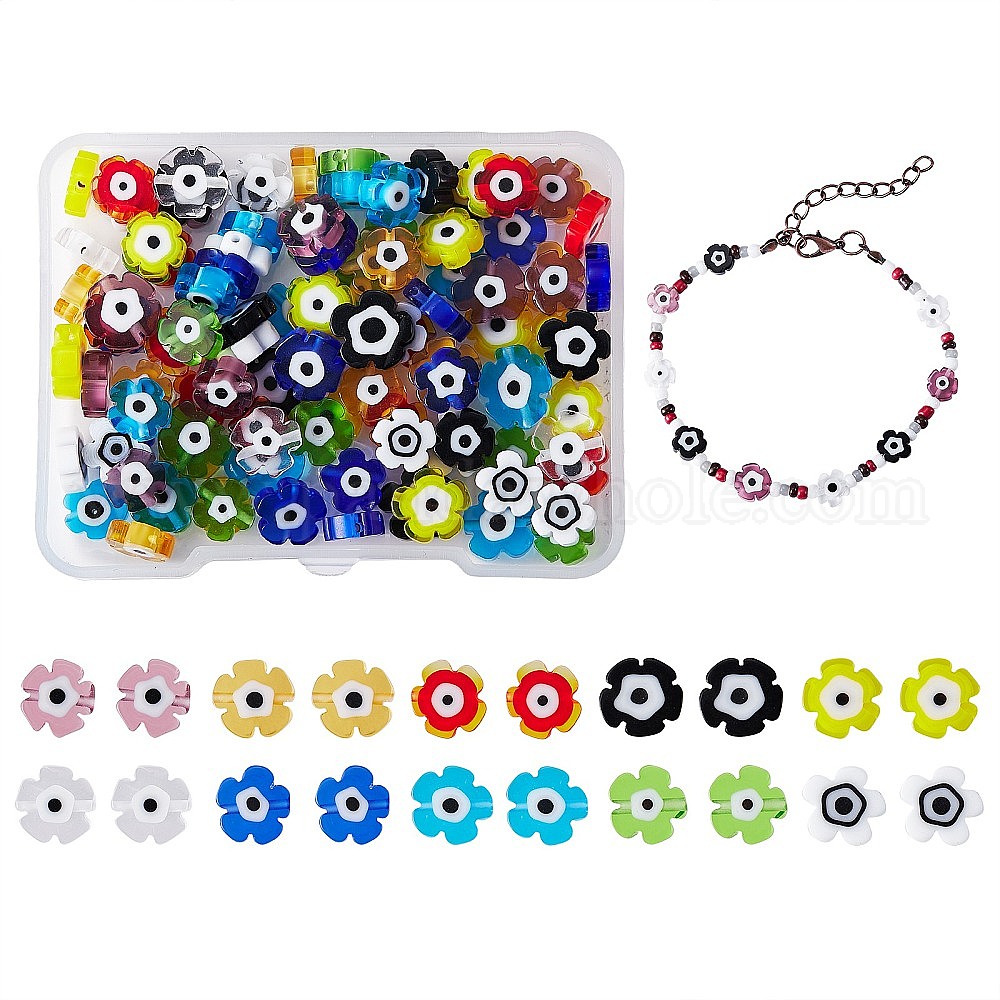 120шт 10цвета ручной работы бусины лэмпворк от сглаза, цветок