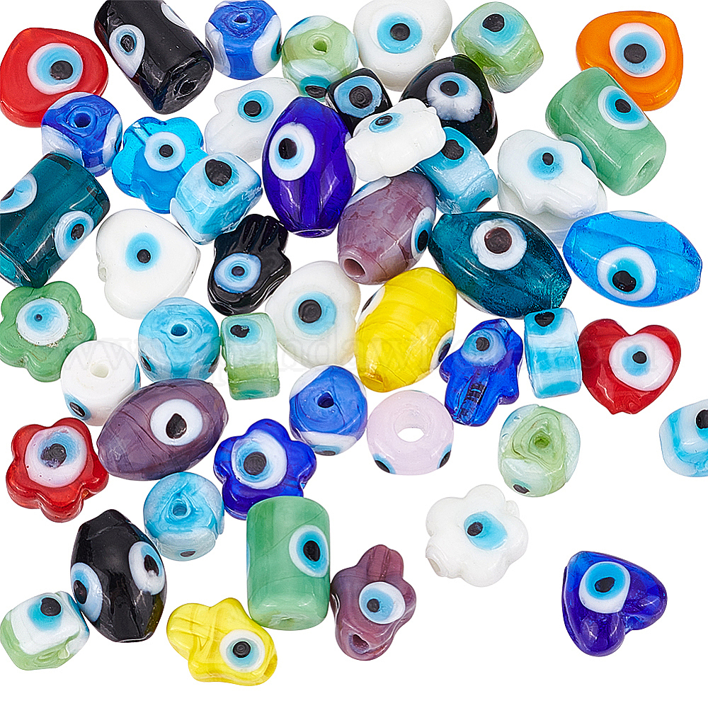 • (52) Непрозрачная лаванда Ручной зло бусины глаз, разнообразные, разноцветные, 10~16x10~14x5~11 мм, отверстие : 1.2~2.5 мм, 50 шт / коробка