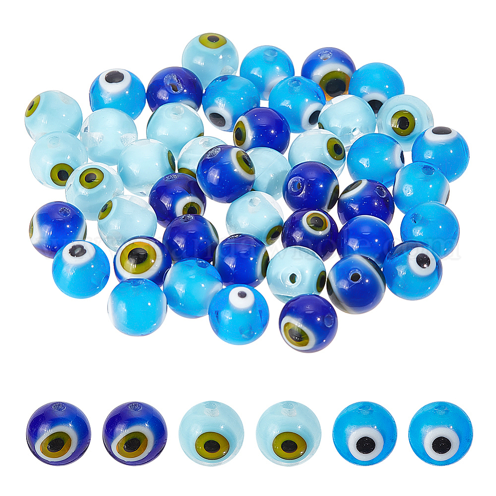 48 шт 3 цвета ручная работа сглаза лэмпворк круглые бусины (02FQ57)