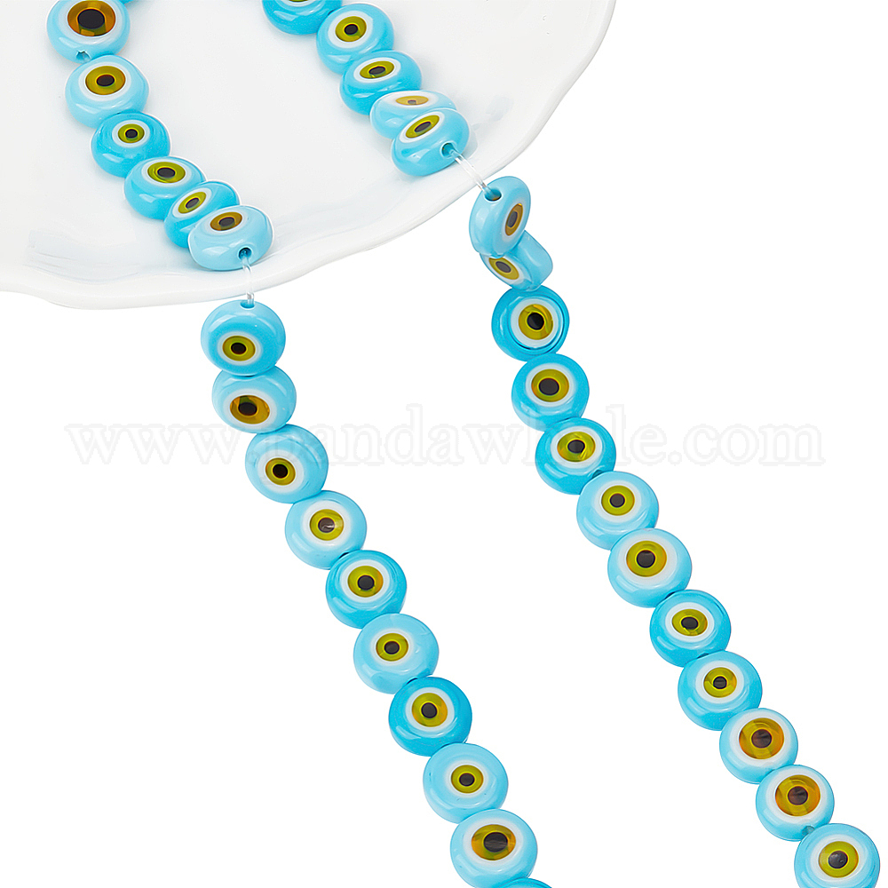 1 нити бусины ручной работы от сглаза лэмпворк нити, плоско-круглые (02FQ5A)