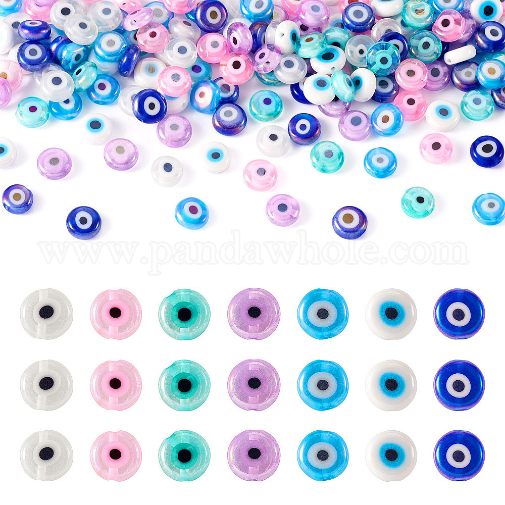 175 шт 7 цвета ручной работы бусины лэмпворк сглаза, с покрытием AB цвета, плоско-круглые