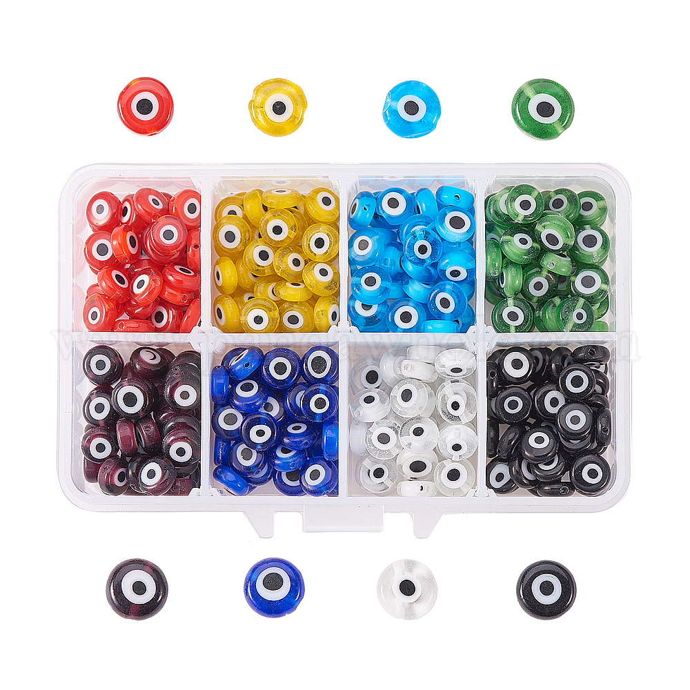 • (52) Непрозрачная лаванда Лэмпворк ручной работы сглаз плоский бусины круглый, разноцветные, 8x3.2 мм, отверстие : 1 мм, 20 шт / цвет, 8 цветов, 160 шт / коробка