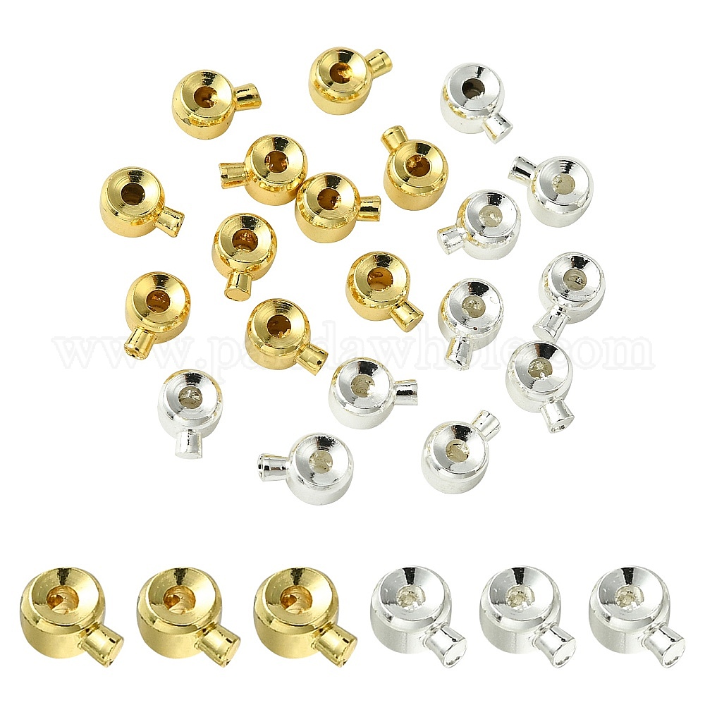 • Золотой & Серебряный 20 шт. 2 цвета латунных обжимных бусин, рондель, золотой и серебряный, 4.3x3.1x2.5 мм, отверстие : 0.8 мм, 10 шт / цвет