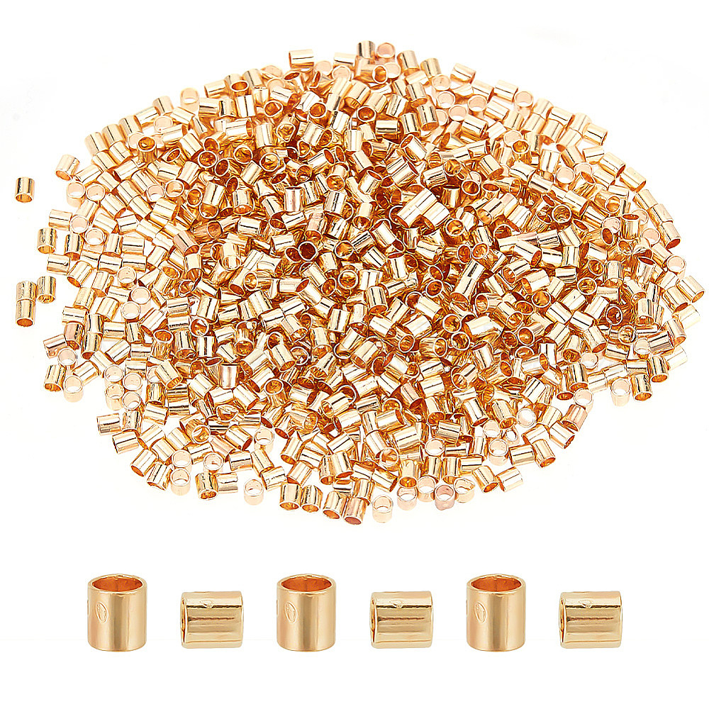 латунные обжимные бусины: около 2 мм в диаметре, 2 мм длиной, отверстие : 1.5 мм, 1000шт;