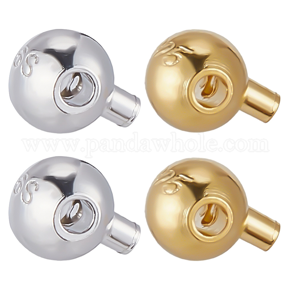 • Золотой & Серебряный 8 шт. 2 цвета 925 бусины-обжимки из стерлингового серебра, круглые, золотой и серебряный, 4x3x2.8 мм, отверстие : 0.9 мм, 4 шт / стиль
