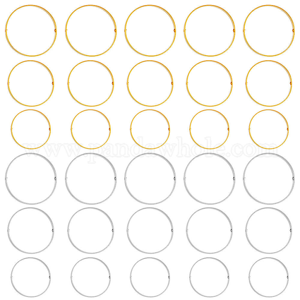 • Платиновый & Золотой 30шт 6 стиль латунные бусины рамки, кольцо, платиной и золотом, 20~30x0.5~2 мм, отверстие : 0.6 мм, внутренний диаметр: 18.5~29 мм, 5 шт / стиль