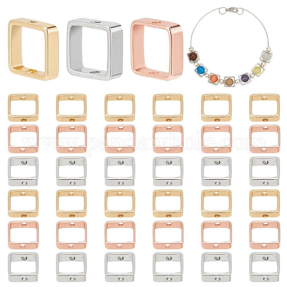 квадрат: ширина около 8 мм, 8 мм длиной, толщиной 2.5 мм , отверстие : 1 мм, 6x6 мм внутренним диаметром, 3 цветов, 16 шт / цвет, 48шт;