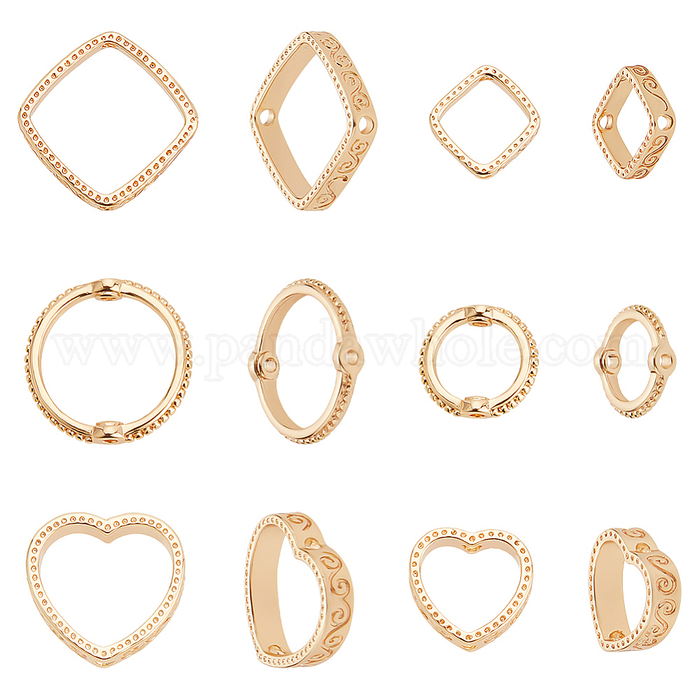 12шт 6 стиль латунные бусины рамки, сердце/ромбус/кольцо