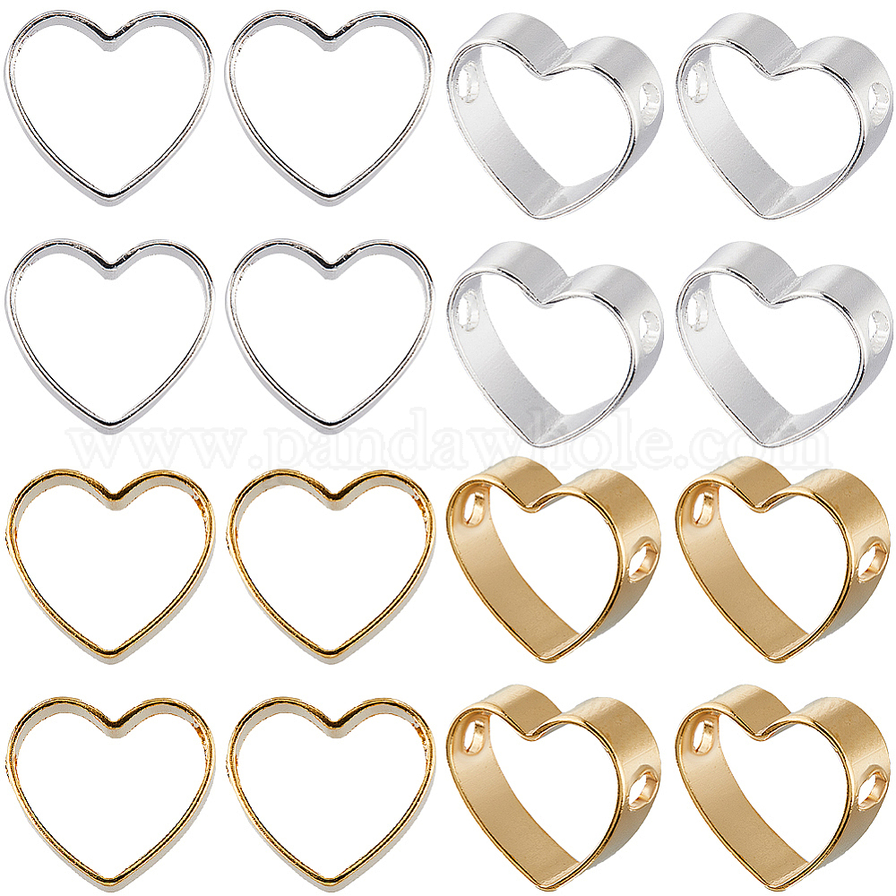 60шт 2 цвета латунная бусина рамка, без кадмия и без свинца, сердце