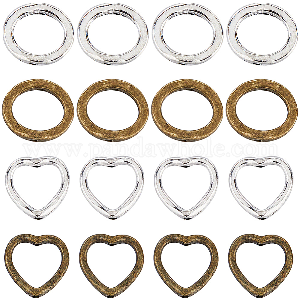 80шт 4 стили оправы из бисера из сплава в тибетском стиле, Сердце & кольцо