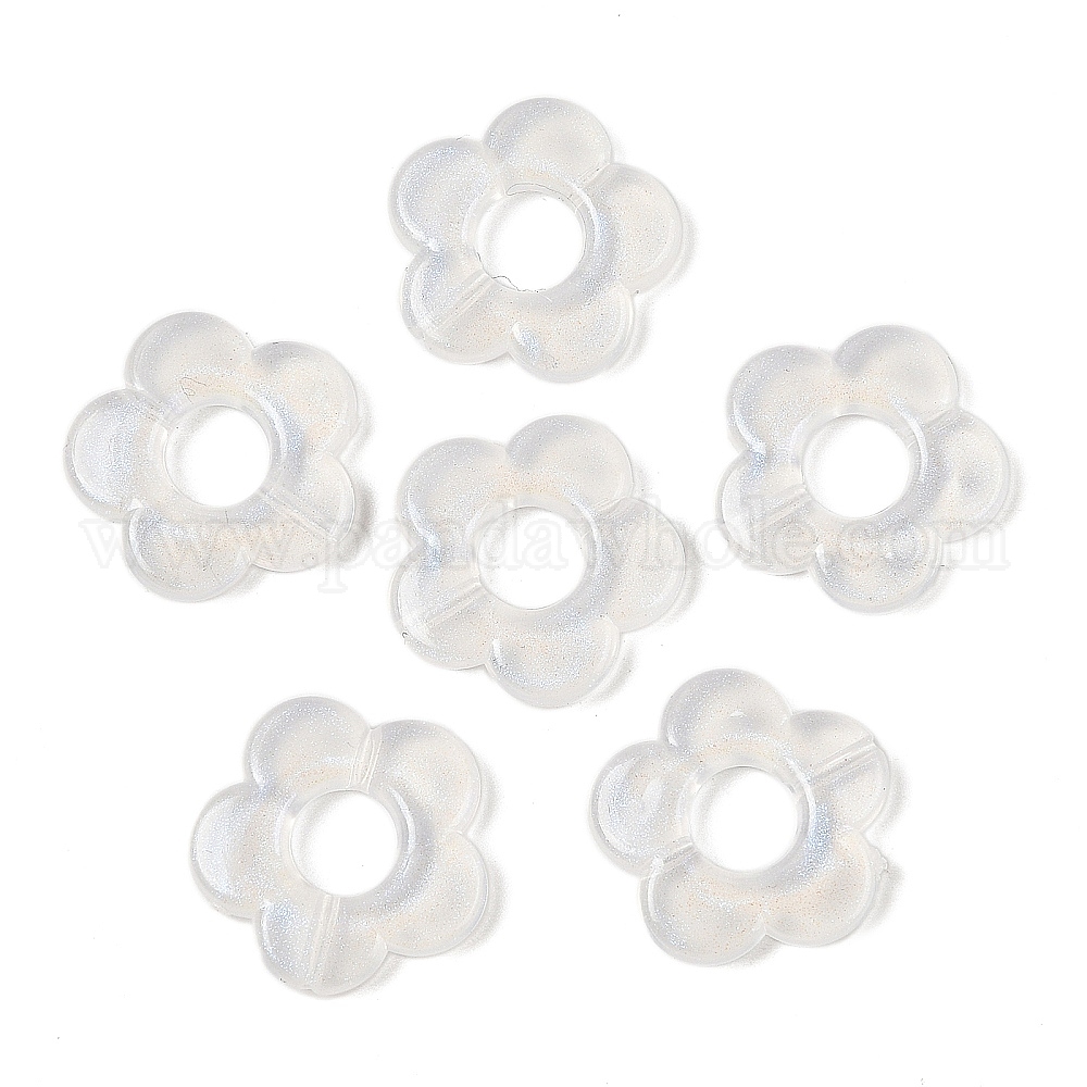 • Белый Дым Прозрачная рамка из акриловых бусин, с блестка, цветок, серый, 19x19.5x3.5 мм, отверстие : 1.5 мм, Около 757 шт / 500 г