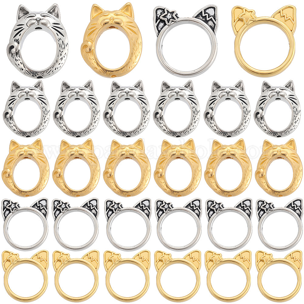 • Античный Серебристый & Золотой 80шт 4 стили сплав бусины рамка, форма кошки, старинное серебро & золотой, 16~18x14.5~15x2.5~5 мм, отверстие : 1.2~1.4 мм, 20 шт / стиль