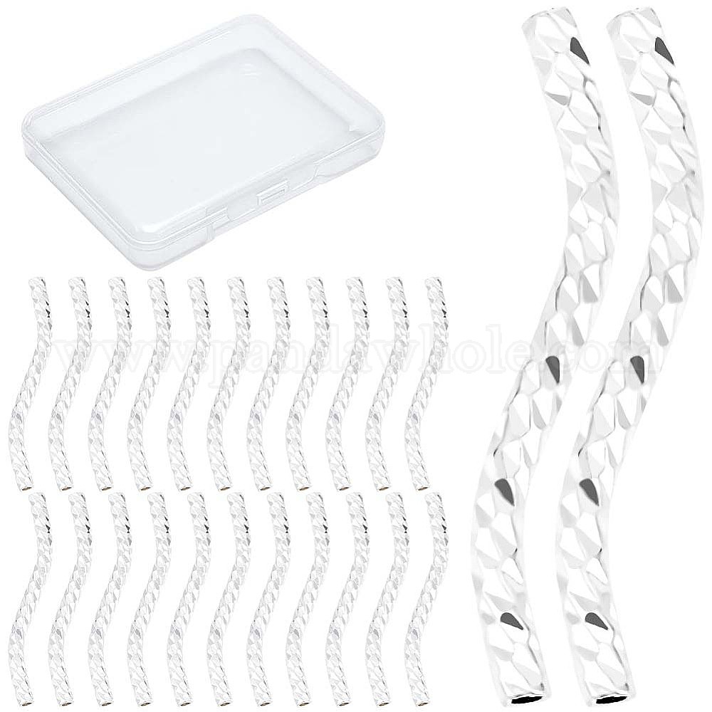 • Посеребрённый Бисера латунной трубки, долговечный, изогнутые бусины, 925 серебро покрытием, 20x1.5 мм, отверстие : 0.8 мм, 40 шт / коробка
