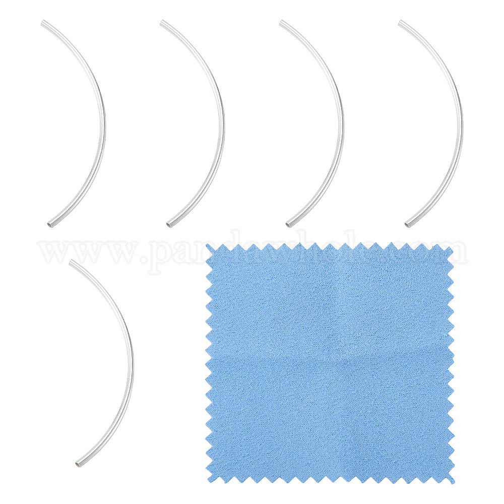 5шт. 925 изогнутые трубчатые бусины из стерлингового серебра, с замшевой тканью из поликарбоната квадратной серебряной полировальной салфеткой