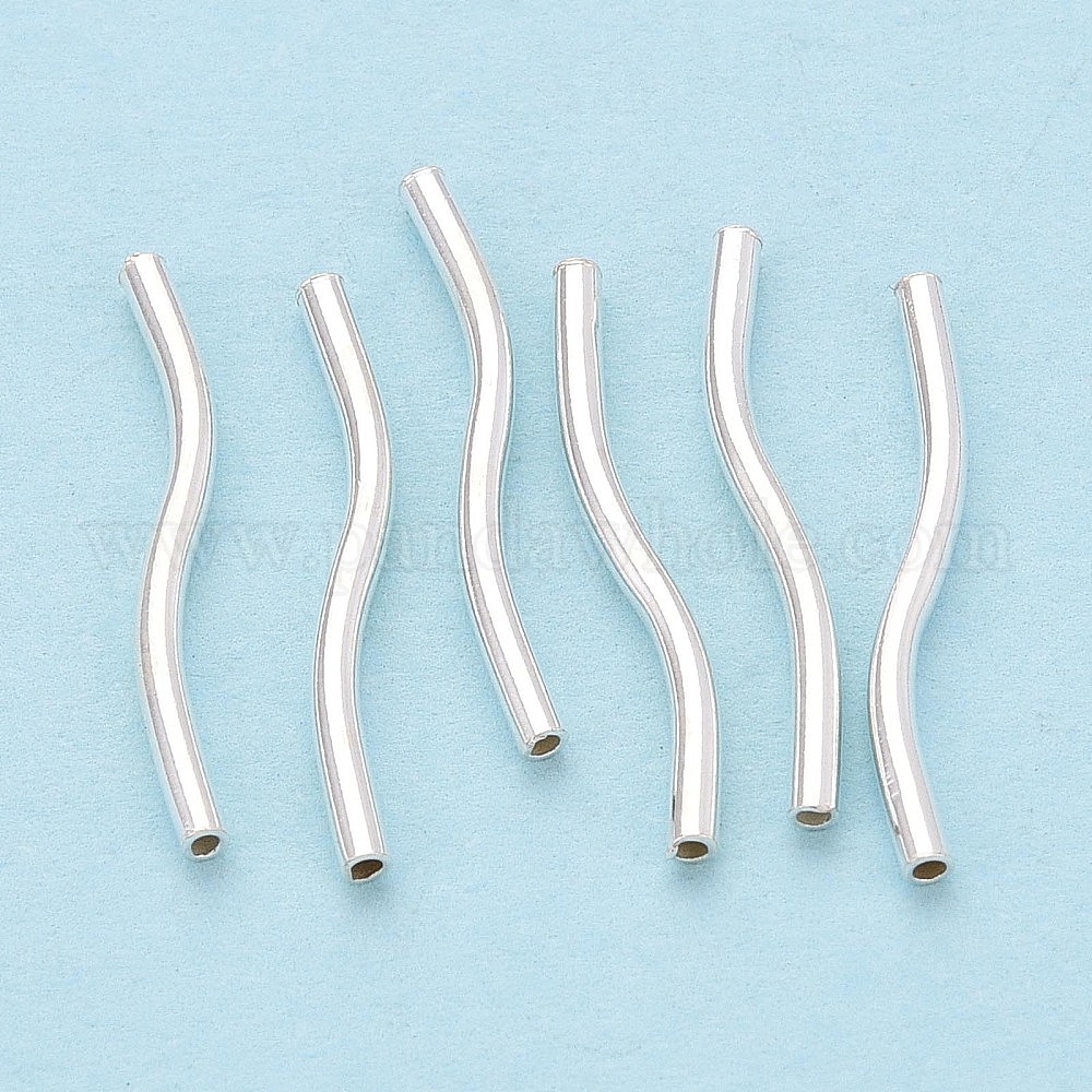 • Серебро 925 серебряные волнистые трубчатые бусины, серебряные, 20.5x1.5 мм, отверстие : 0.9 мм